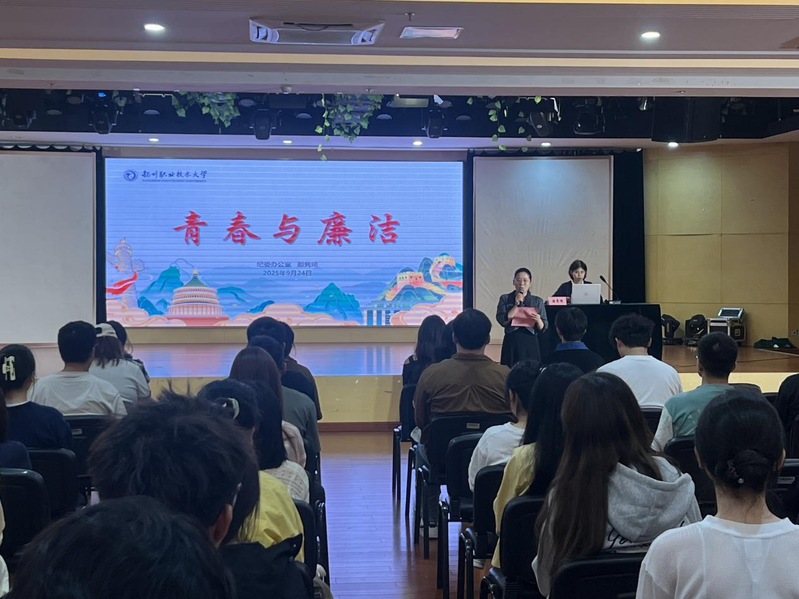 2025年9月24日,为进一步增强学生干部的廉洁自律意识,筑牢拒腐防变的思想防线,校团委邀请学校纪委办公室监督科科长颜隽琦老师,在芳华剧场为学生干部代表开展了“青春与廉洁”专题教育讲座,旨在引导学生干部树立正确的权力观、价值观,守护青春底色,担当时代使命。